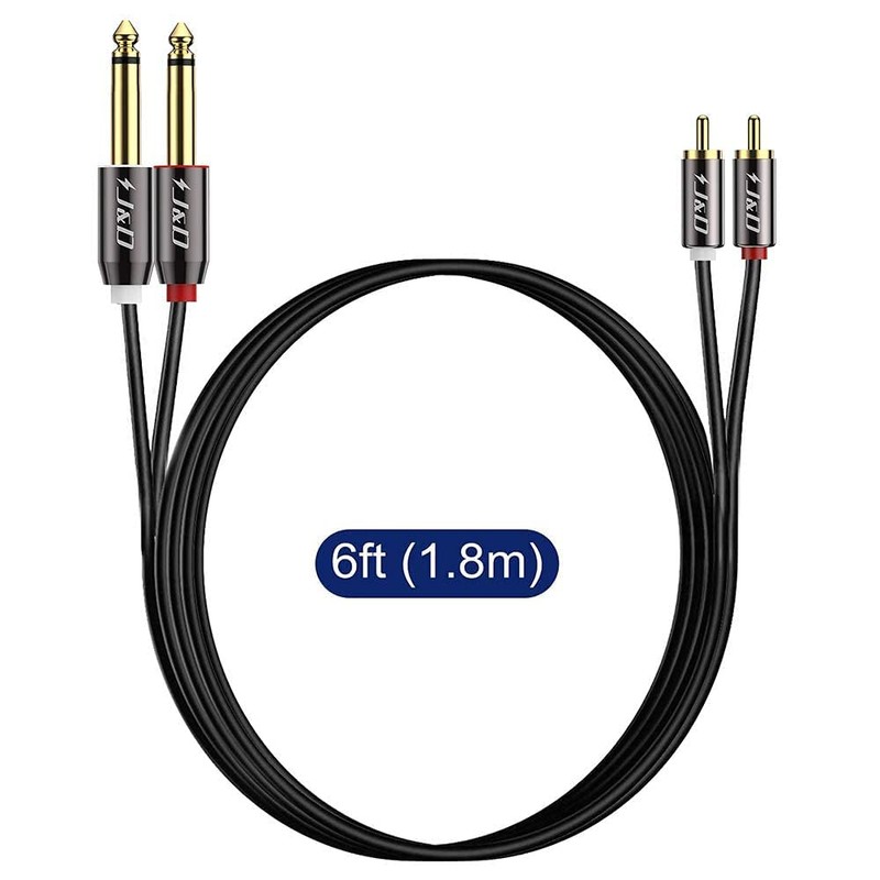 J&D J&D RCA to 1/4 Cable, Dual 1/4 inch TS to Dual RCA Stereo Audio Interconnect Cable, Gold Plated Copper Shell Heavy Duty 2X 6.35mm 1/4 inch Male TS to 2 RCA Male Adapter Cable, 6 Feet