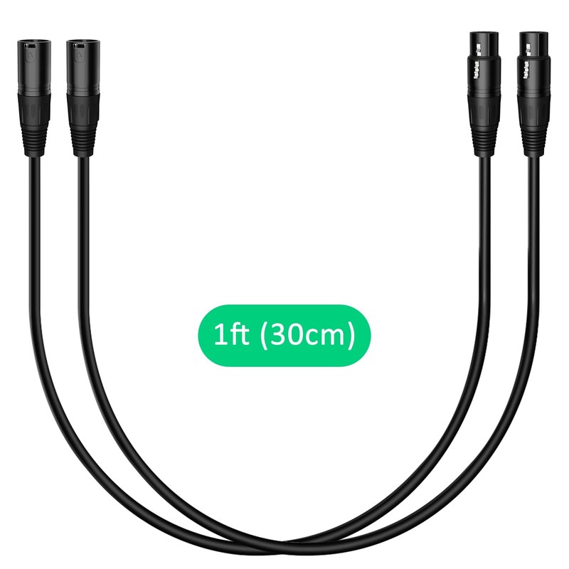 J&D XLR Male 3 Pin to XLR Female 5 Pin Cable, 2-Pack DMX 512 Turnaround DMX Stage Cable XLR 3 Pin Male to DMX 5 Pin Female, 30 cm