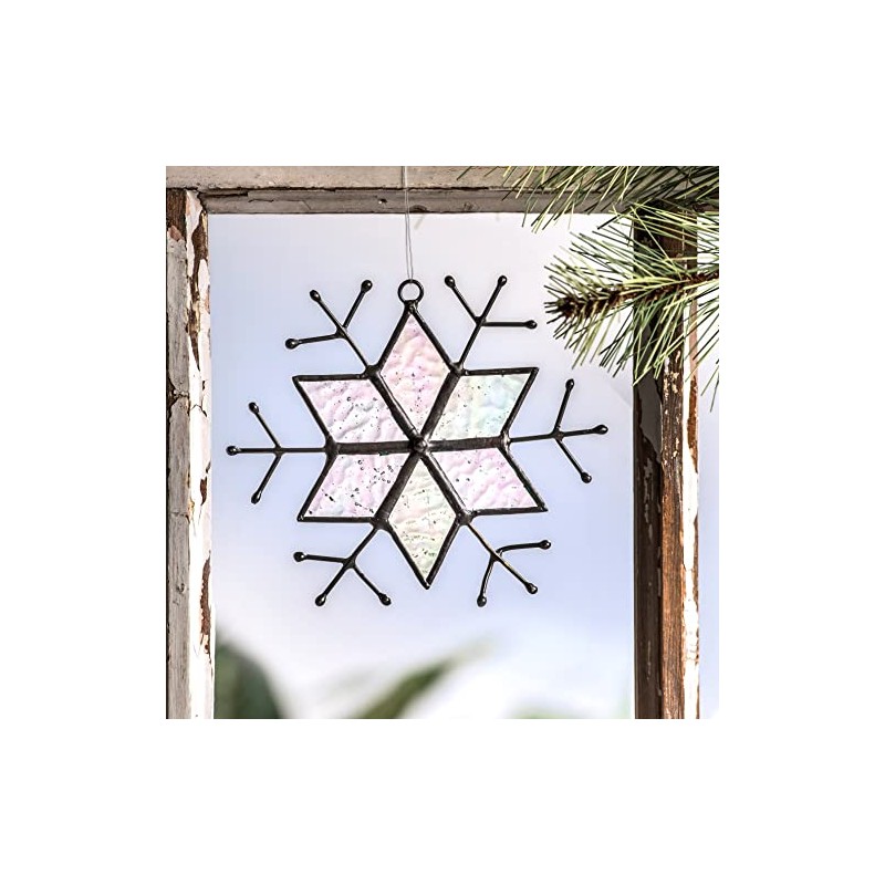 J Devlin Glass Snowflake Ornament Christmas Tree Window Iridescent 189-B