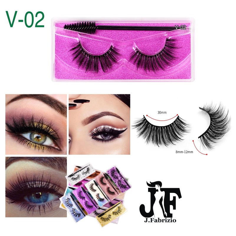 J.Fabrizio Eyelashes Makeup Natural 3D Dense Sexy False Lashes Soft Can Be Used Repeatedly False Eyelashes With Eyelash Brush, Without Lash adhesive V-02 12mm