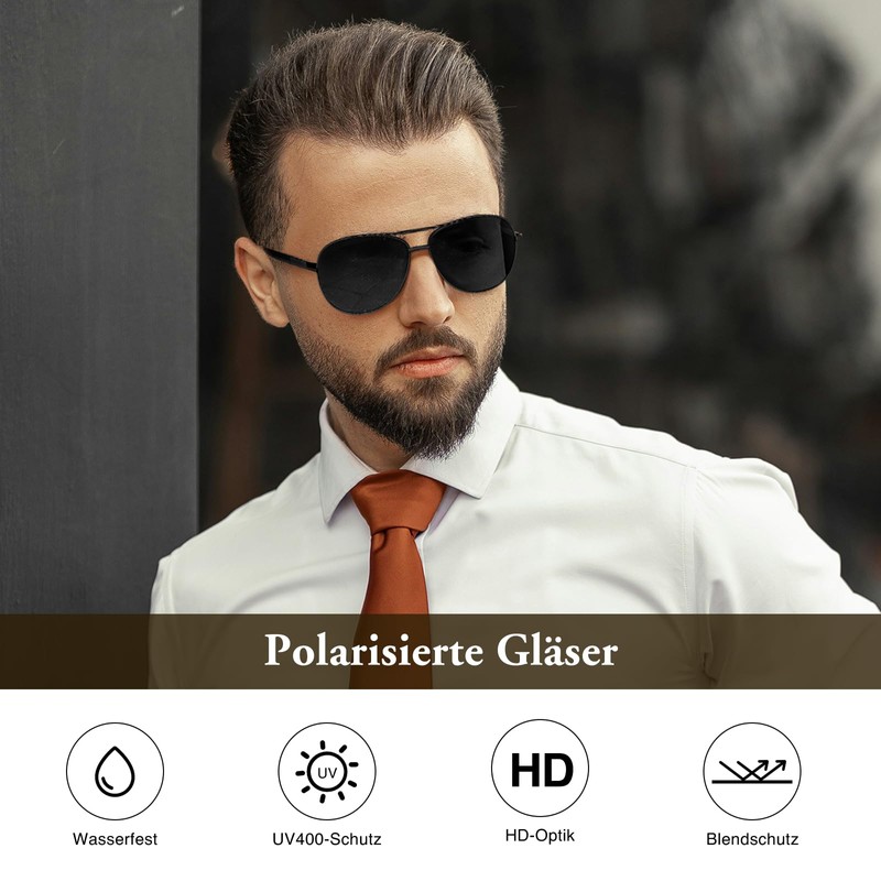 - High-quality material: these aviator glasses men are equipped with a lightweight metal frame that does not strain on the nose even during prolonged wear. The lenses of the men's polarised sunglasses are made of TAC material, the lenses are polarised, which effectively reduces glare and stray light and makes your vision clearer.