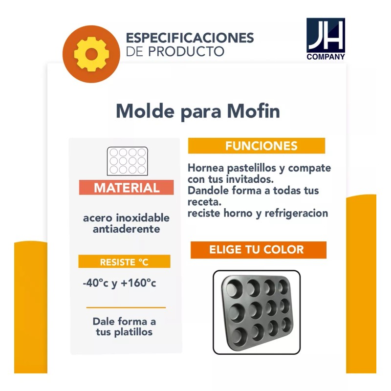 J.H. Company Molde Cupcake Muffin Panque Antiadherente Reposteria 10221