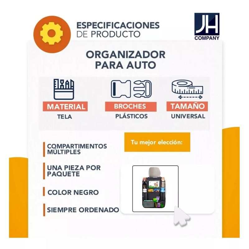 J.H. Company Organizador Para Asiento Trasero De Auto Porta Tablet Zc-001