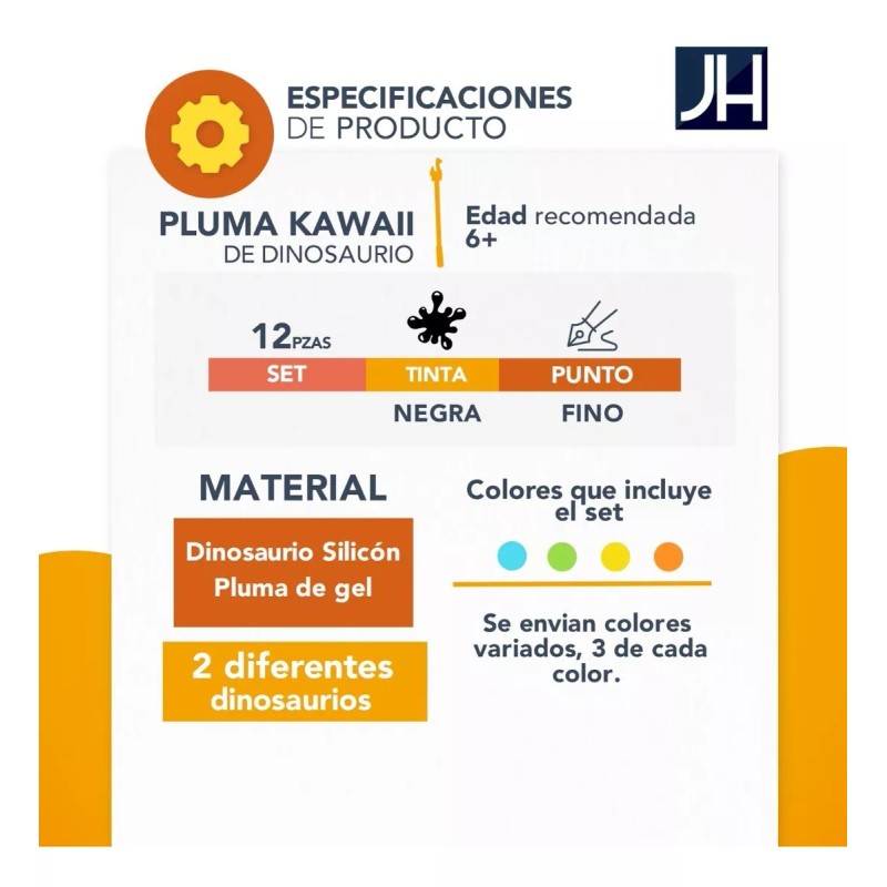 J.H COMPANY Set De 12 Plumas Dinosaurios Kawaii Tinta De Gel Mayoreo