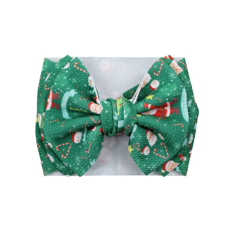 - HEAD BAND: Between 5-6 Inches Bow on a Nylon headband and is stretchy to fit for babies toddlers, kids and little girls. HEAD BAND MATERIAL: Bow - Cotton; Headband: Non-slip Nylon band. Each bow is firmly attached Head band by glue.