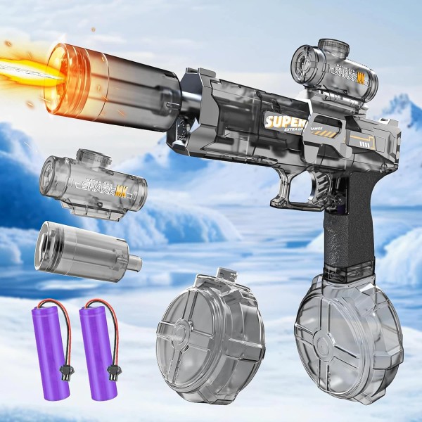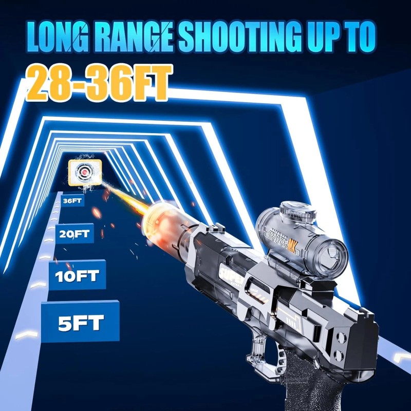 - 【Innovative Transparent Design & Realistic LED Flame】This electric water gun features a realistic LED shooting flame effect, the intense light show ramps up the adrenaline, making every battle feel like the ultimate summer smackdown. Watch the inner mechanics in action as the trigger pulls and the piston moves, providing not only entertainment but also a cool educational experience on mechanics. Stylish and functional, it's an ideal gift for kids who love technology and outdoor play.