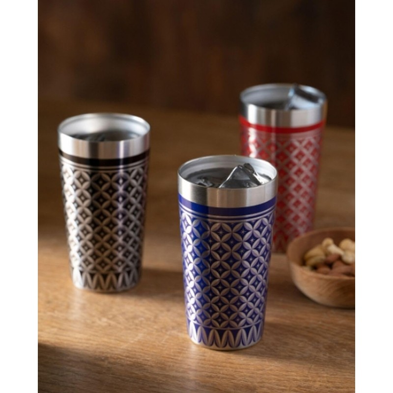 J-kitchens コップ ステンレス 真空二層 タンブラー 赤 木箱入 350ml