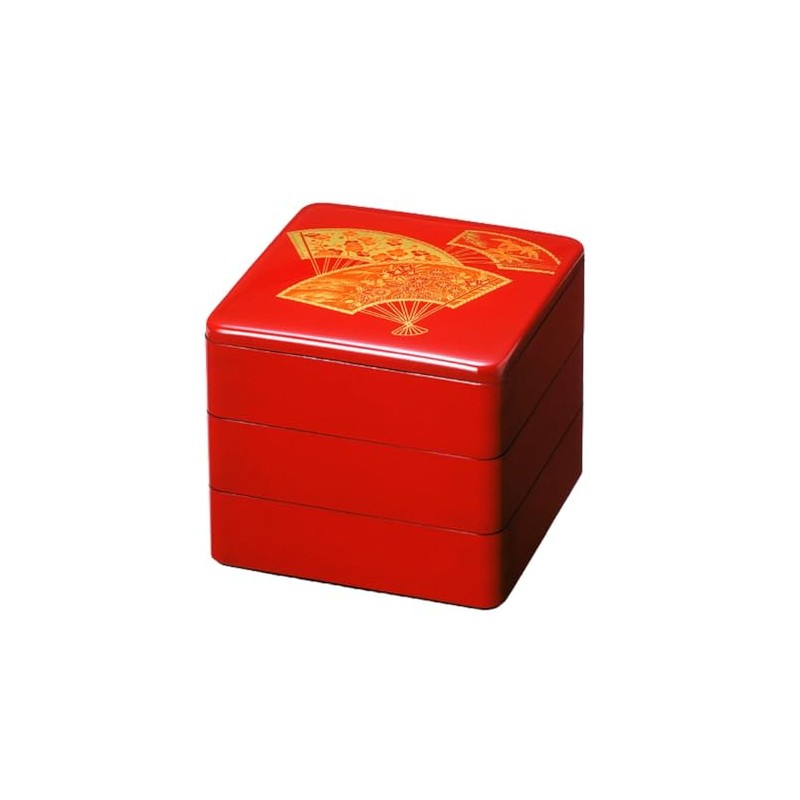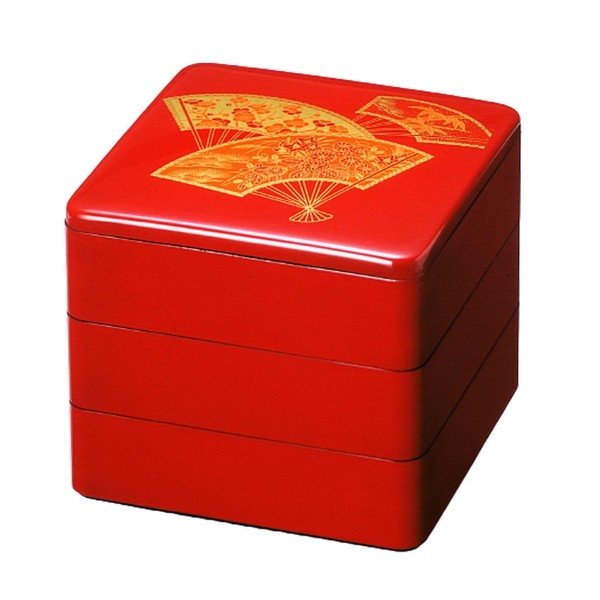 J-kitchens Excursion Lunch Box, Made in Japan, 3 Tiers, 6 Inches, Heavy Vermilion Fan, Pine and Plum Plum, 7.1 x 7.1 x 6.4 inches (18.1 x 18.1 x 16.3 cm)
