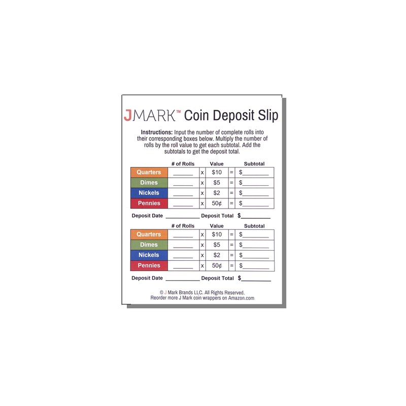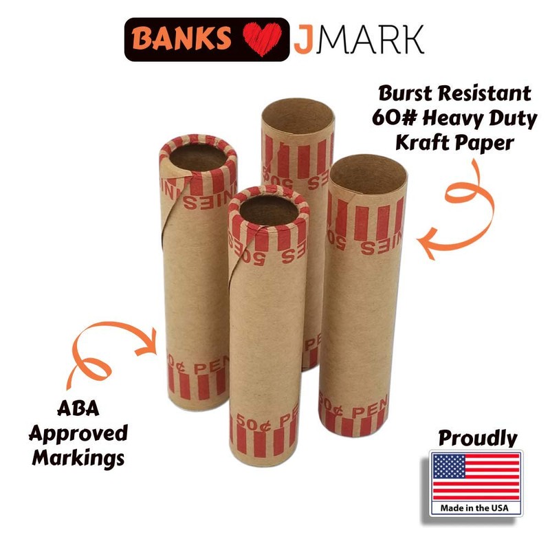 - SATISFACTION GUARANTEED & USA PROUD - J Mark Coin Roll Wrappers are hand-packed, and undergo a rigorous quality inspection to minimize defects reaching our valued customers. if a defect does chance to slip through our inspection and arrive with your order, PLEASE LET US KNOW, AND WE PROMISE TO MAKE IT RIGHT. Our wrappers are proudly manufactured and assembled in the USA!