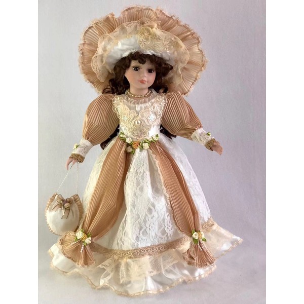 - 18" Exclusive Collectible Porcelain Victorian Doll, fancy hat with soft, white feathers, this Victorian beauty is a great addition to any porcelain doll lover's collection.