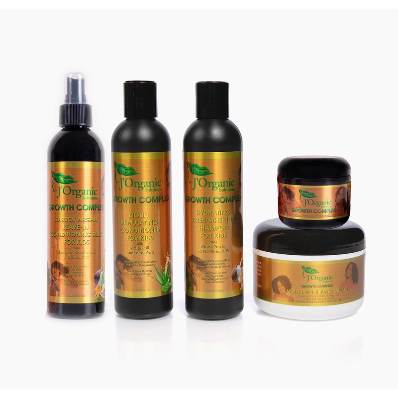 J'Organic Solutions Kids Curl Care Kit - Leave-In Conditioner, Hair Moisturizer, Scalp Stimulator, Shampoo & Conditioner for Kinky, Coily, Wavy Hair Types