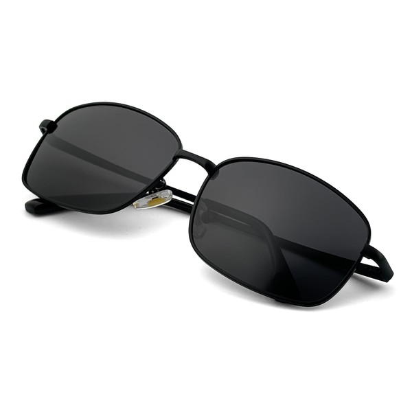 J+S Kaha Minimalistic Rectangular Frame Polarized Sunglasses for Men, Duroframe Metallic Alloy, UV400 (Black Frame/Charcoal Black Lens)
