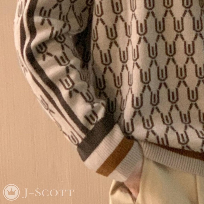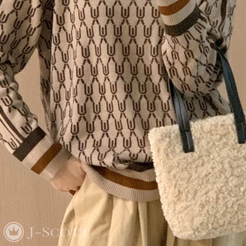 (Add a playful geometric pattern to your outfit) The calm coloring of beige and brown gives the geometric pattern an elegant and classic impression. Soft knit material with a subtle brushed feel is comfortable and provides ample warmth. The stretchy polyester material is easy to clean.