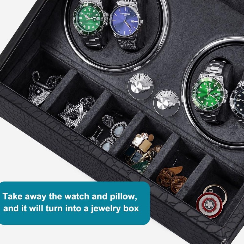 - 【4 Rotation Modes】Automatic watch winder box has 4 modes to choose for the user, which include Clockwise Mode, Counter-clockwise Mode, Clockwise + Counter-clockwise mode, None-Intermittent clockwise + counterclockwise mode.
