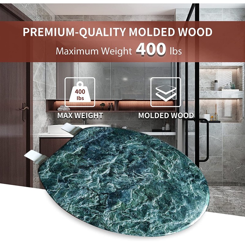 - Molded wooden design provides a high quality sturdy seat that fits most standard round toilets