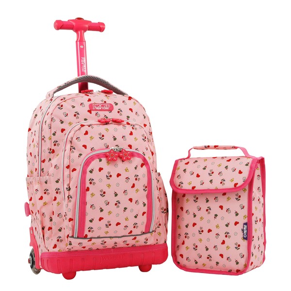 J World Lollipop Kids Rolling Backpack & Lunch Bag Set for Elementary School. Carry-On Suitcase with Wheels, Pink Yard