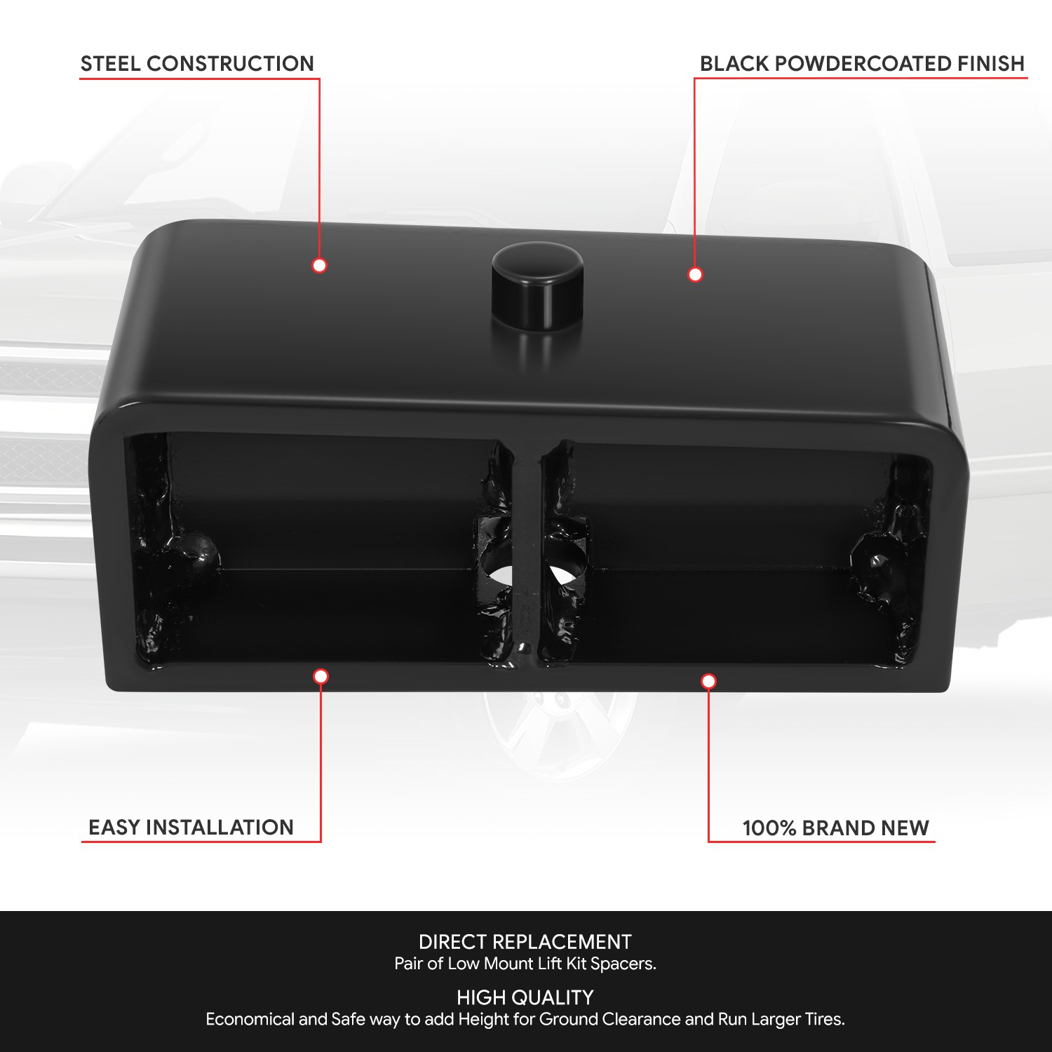 - Economical and Safe way to add Height for Ground Clearance and Run Larger Tires