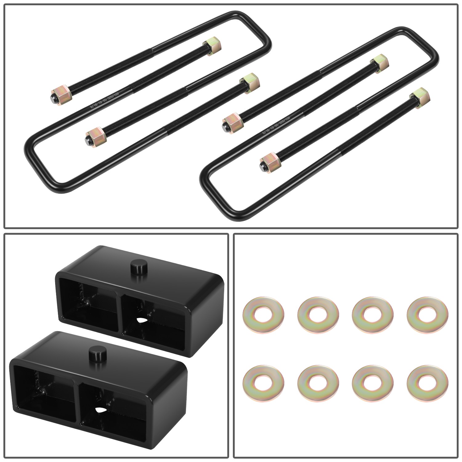 - Items Included: Rear Blocks, U-Bolts, Mounting Hardware