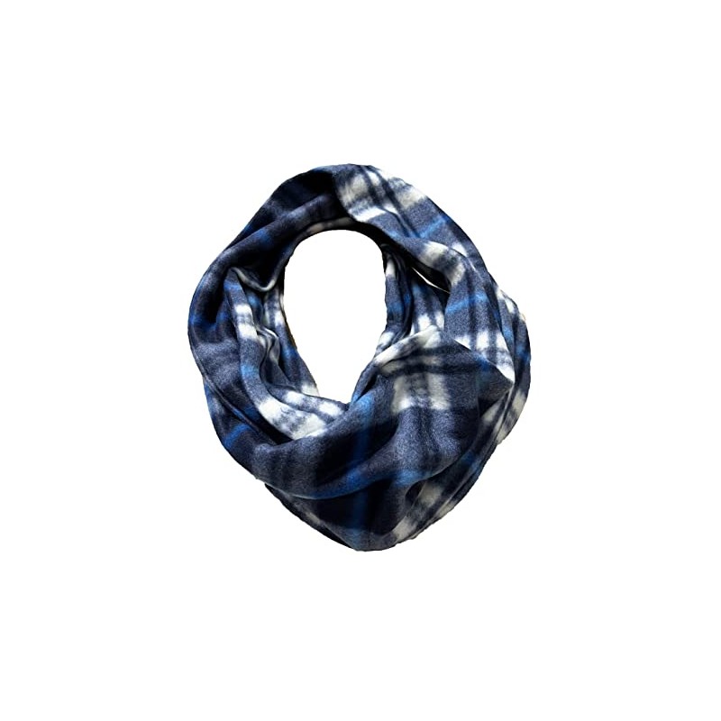 J26 Tartan Warm Winter Loop Scarf Checked Tube Scarf Round Scarf Fluffy, blue white