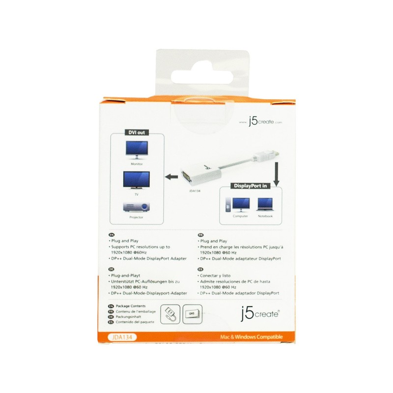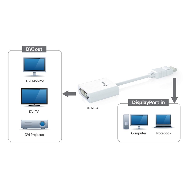 j5create DisplayPort to DVI Adapte, DP to DVI (Male to Female) Compatible with Mac and Windows (JDA134)