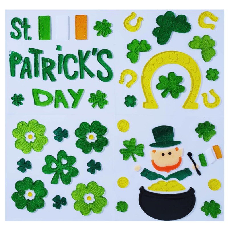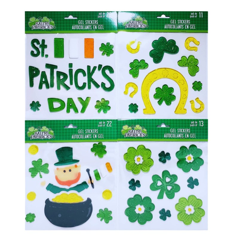 - Includes (4) Packs of St Patrick’s Day Window Gel Clings(68 Clings Total), Each sheet has 11-pack, 13-pack, and (2)22-pack