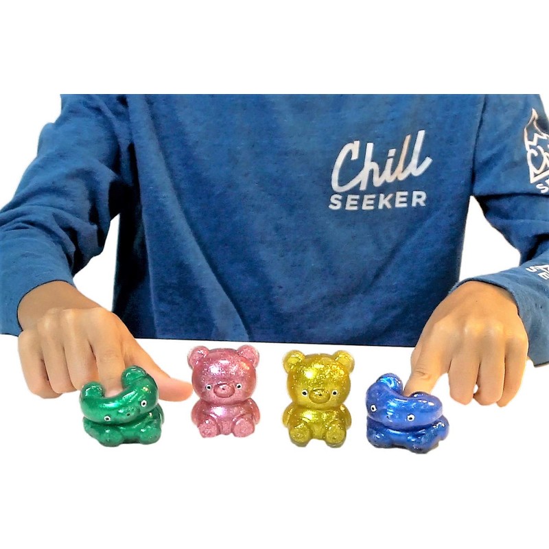- GLITTER SLIME FILLED TOYS - USA approved and ASTM tested mochi squishy toy. These Bear themed animal squishies are made of soft and stretchy high quality non toxic materials. The squishy texture makes these fidget squeeze toys safe and fun for kids to play with. Easy to wash with water and soap.