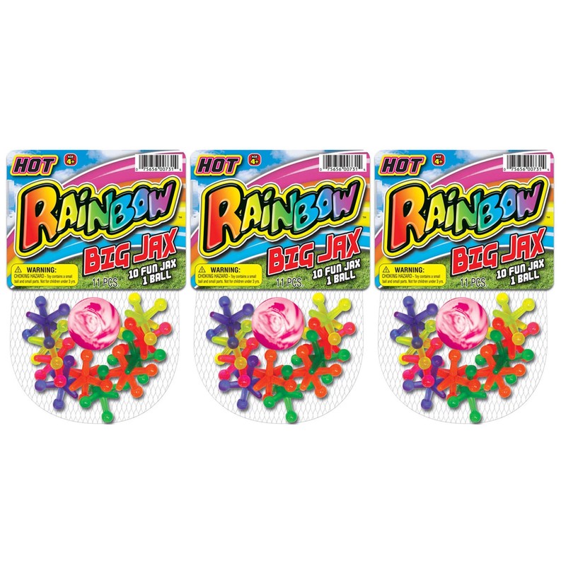 - Pack of 3 Sets of Jax's!. Rubberized jacks are easy to toss and pick up!. Comes with 1 additional collectable JA-RU exclusive Bouncy Ball.