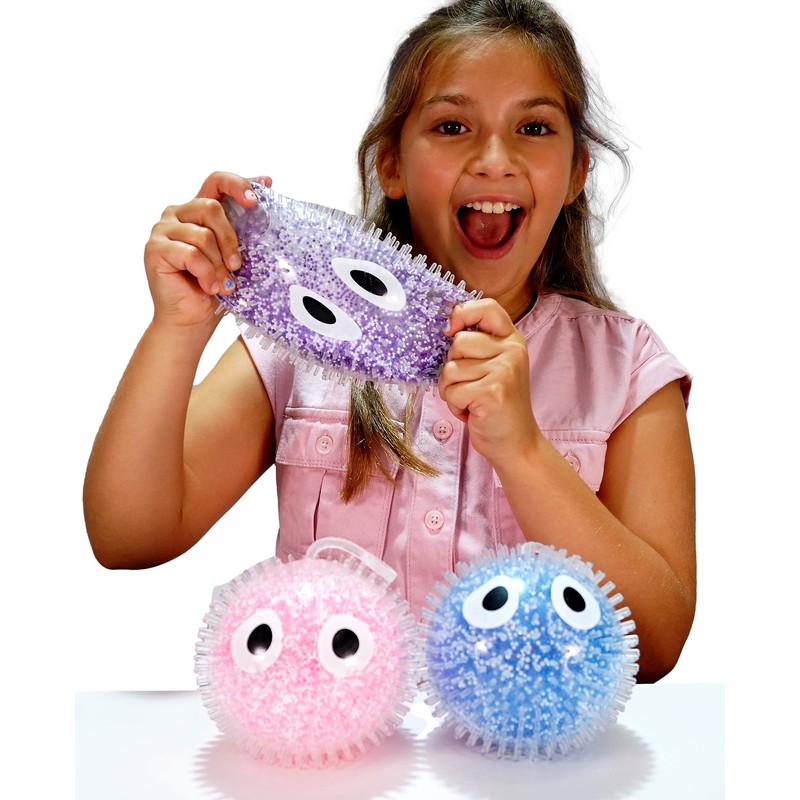 - 1 INDIVIDUALLY PACKED SQUISHY STRESS BALLS - Squish, Stretch, and Bounce these stress relief-fidget toys. 5" in diameter and has sensory spike-like tentacles. Fun to squeeze. Random assorted colorful stress ball (Purple, Blue, Pink, and Orange) Plus 1 FunaTon Sticker.