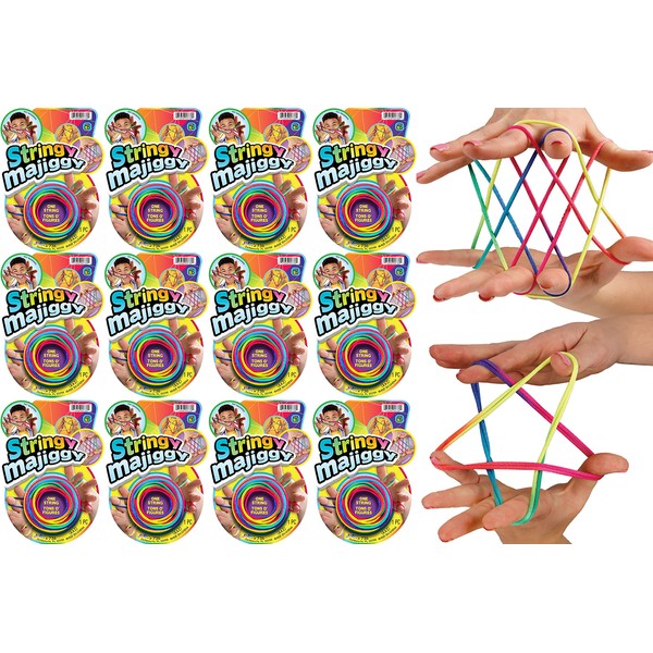 JA-RU Stringy Majiggy Cats Cradle - Chinese String Toys (12 Cats Cradle) Finger Hand String Tricks Games for Kids & Adults Girls & Boys. Rainbow Stretchy Rope. Party Stocking Stuffers. 736-12s