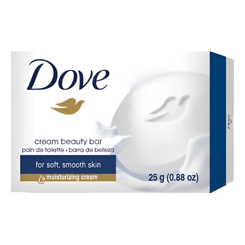 Jabón en barra Dove con crema humectante 25g : Esta suave fórmula de limpieza contiene 1/4 de crema humectante para brindar una piel más suave y radiante.