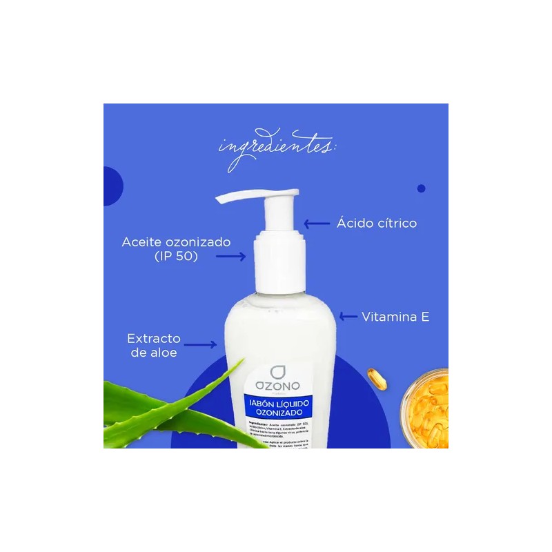 El jabón líquido ozonizado es un apoyo para nuestra higiene diaria, gracias al aceite ozonizado potencia la capacidad antiséptica.