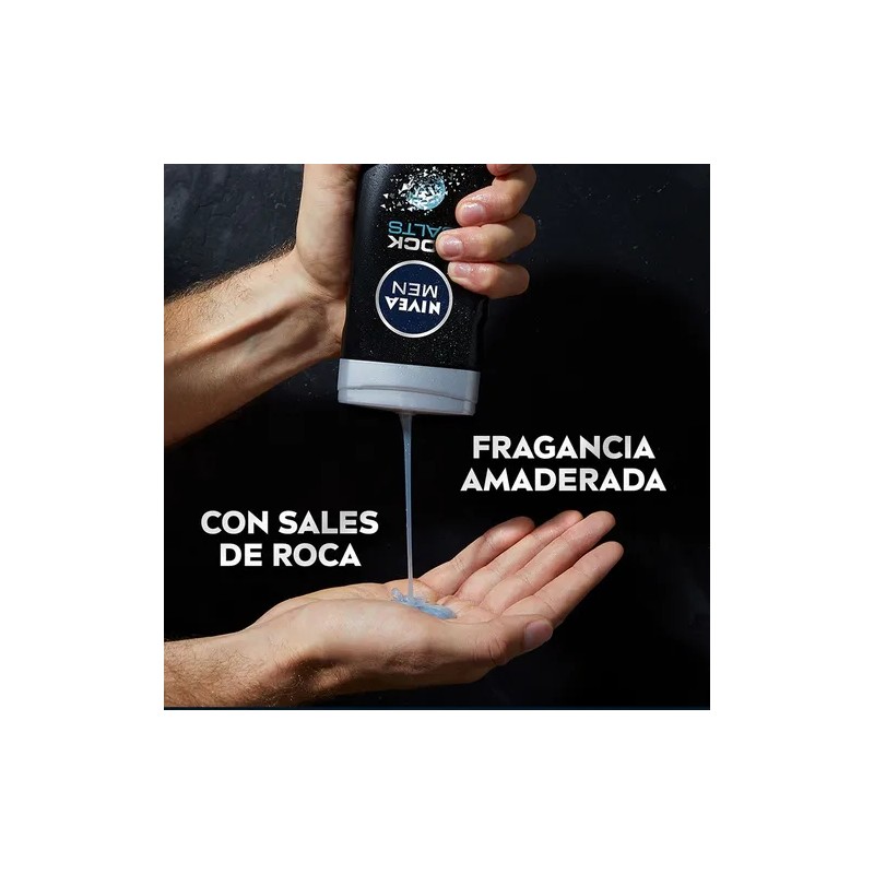 NIVEA MEN Rock Salts Jabón líquido corporal ofrece una limpieza profunda y revitaliza la piel. Experimenta una ducha única con su fórmula enriquecida con sales de roca, que proporciona un cuidado intenso y una limpieza profunda. Este jabón corporal cuenta con una fragancia masculina y refrescante, y se transforma en una espuma protectora que revitaliza la piel. Apto para uso diario, se debe evitar el contacto con los ojos. Para aplicar, humedecer las manos o una esponja y frotar sobre el cuerpo hasta crear espuma, luego enjuagar.