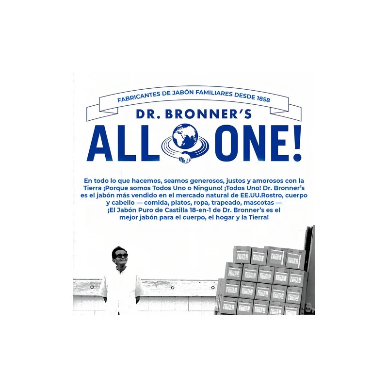 Utilizando los productos de Dr. Bronner’s tendrás un cuerpo y mundo más sano además de la satisfacción de saber que eres parte de un cambio positivo en el mundo.