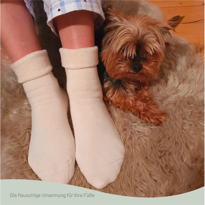 - Fit and excellent wearing comfort – Our warming bed socks have a high natural fibre content and no cutting rubber as a finish. They are 100% natural. The wool plush is loosely knitted and suitable for men and women, equally suitable for children