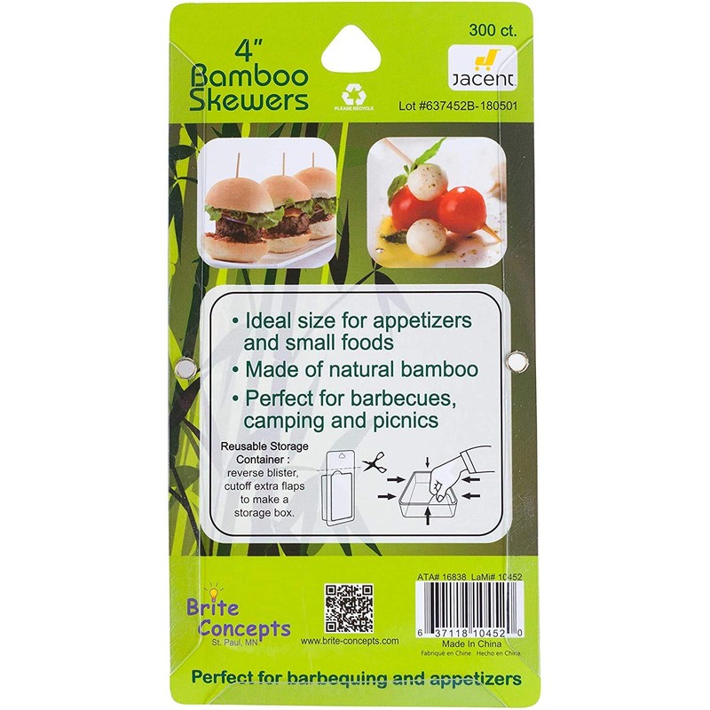 - MATERIAL: Each renewable bamboo skewer measures 4 inches long.