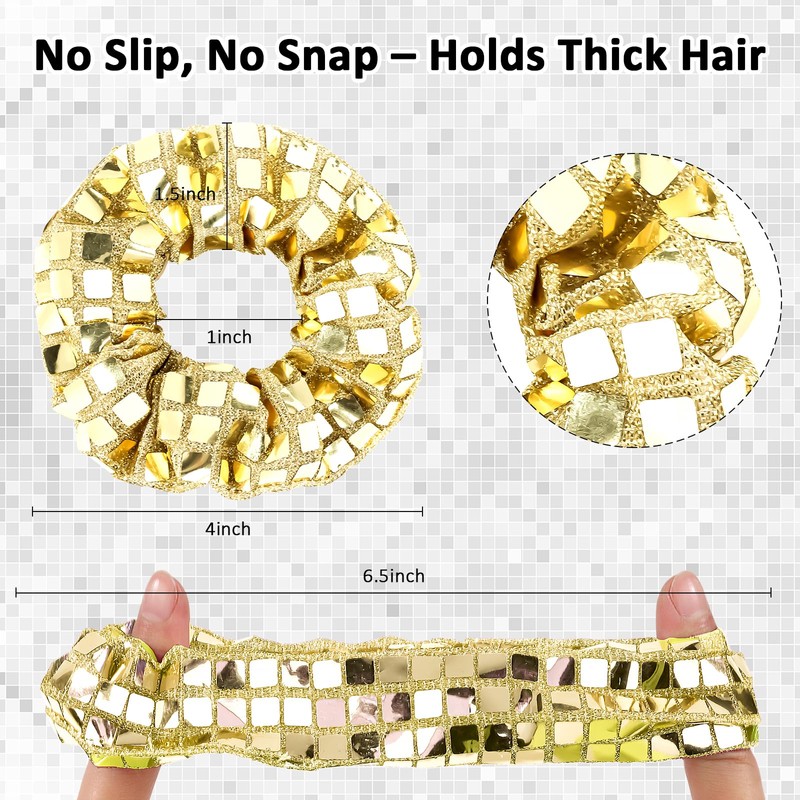 - Party-Proof & Everyday Ready: From brunch dates to disco nights, these scrunchies adapt like a pro. Pair ’em with a cozy sweater for a casual vibe or let them shine at a NYE party or bridal shower. The gold hue pops against any hair color, making it a must-have for teens, women, and anyone who loves a pop of fun.