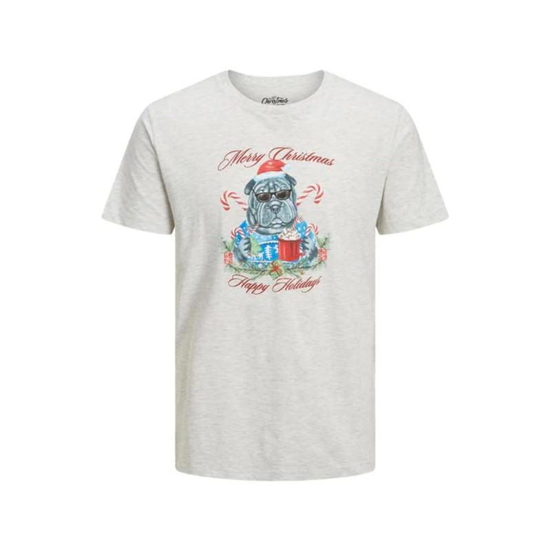 JACK & JONES Men's Jorchristmas Mugshot Tee Ss C.n Xmas T-Shirt, White melange