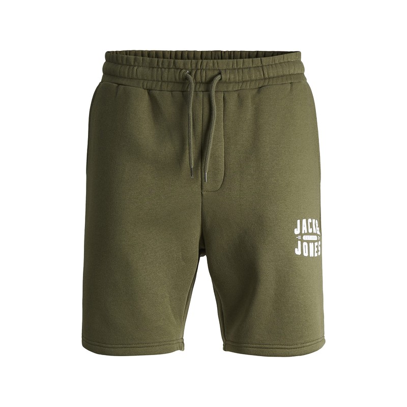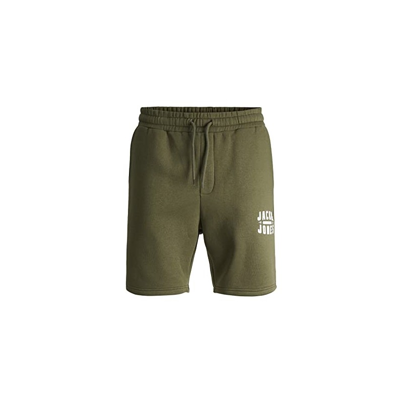 JACK & JONES Men's Logo Printed Sweat Shorts, Navy Blazer, Black, Light Grey Melange Or Olive Night (S, Olive Night)