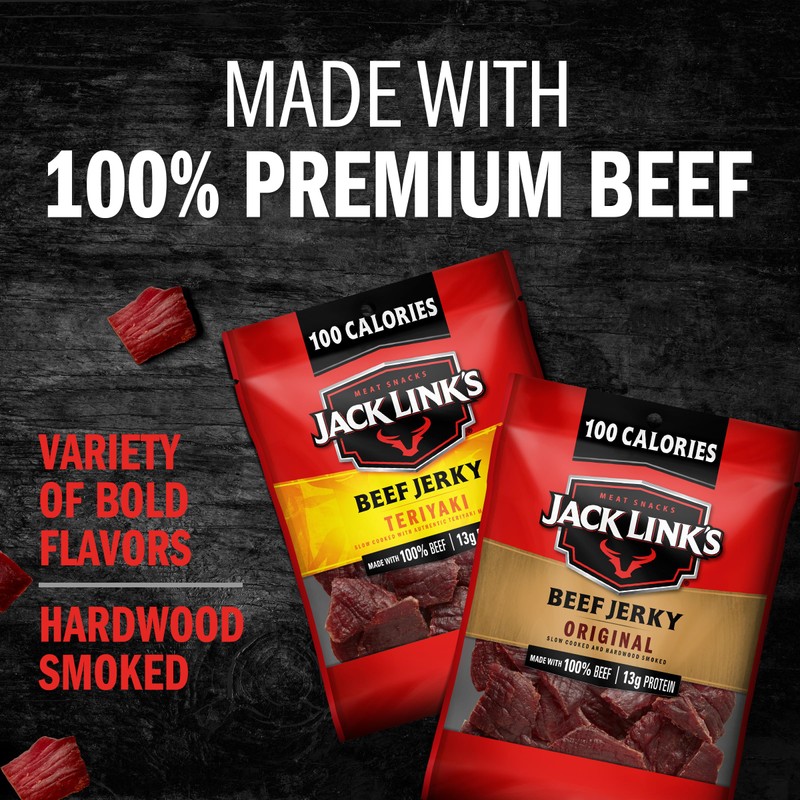 - MADE WITH 100% BEEF: Our Jack Link's Beef Jerky is made of lean cuts of 100% beef. The taste is so great that it makes a great jerky gift for men or women alike! Kids and teens can stay fueled up at school too with great tasting Jack Link's