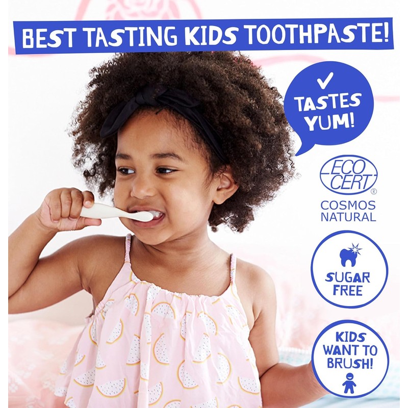 - MAKES KIDS WANT TO BRUSH: Expertly formulated with organic fruit flavouring to be safe if swallowed. Our sugar-free toothpaste tastes so good, babies and kids will actually want to brush their teeth