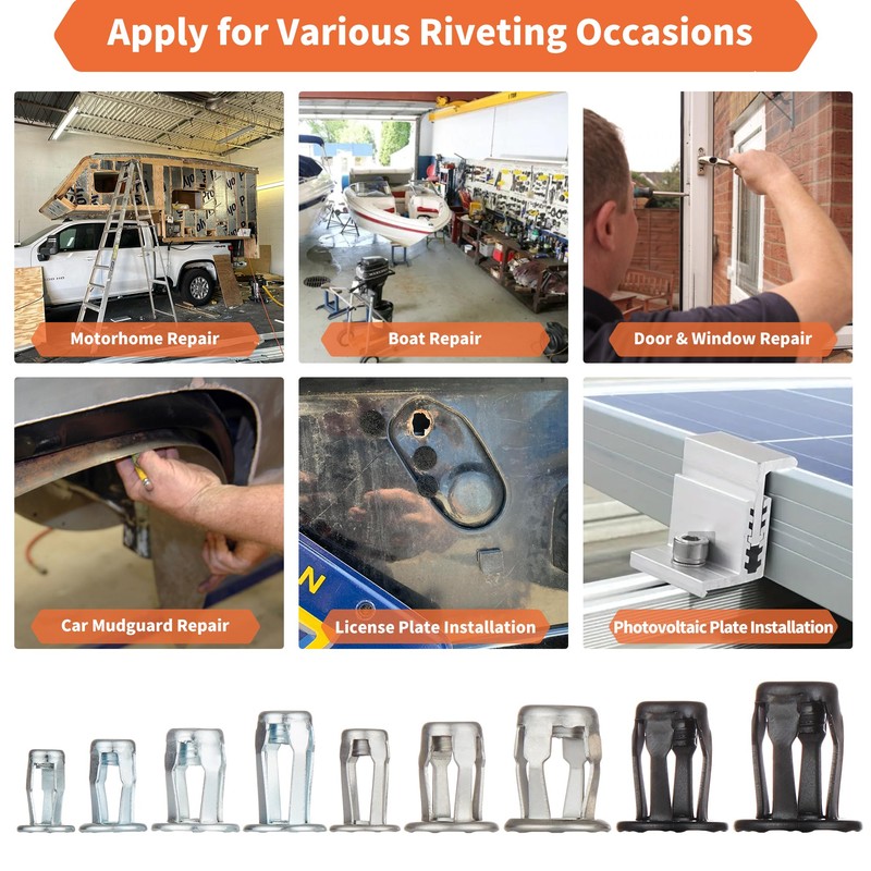- Wide Applications: Suitable for connecting most metal plates and pipes, riveting industrial electrial products, such as vehicles, ladders, furniture, home décor, repairing elevators, cars, bicycles, boats, switches, instruments.
