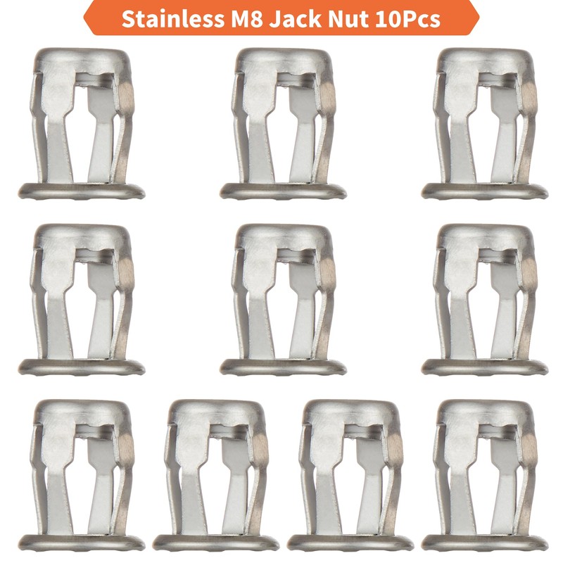 Jack nut Installation Tool Set Hand Thread Insert Jacknuts Assortment Kit for Thin Metal Plastic Polywood Pressboard Hardboard (M8 (Jack Nut-10pcs, Stainless))
