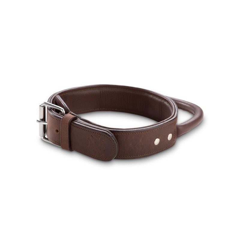 Jack Premium Leather Dog Collar with Handle, Real Leather, Very Robust, Jack (M)
