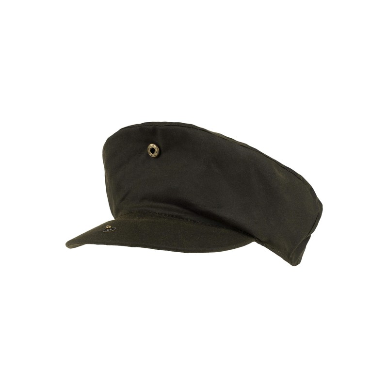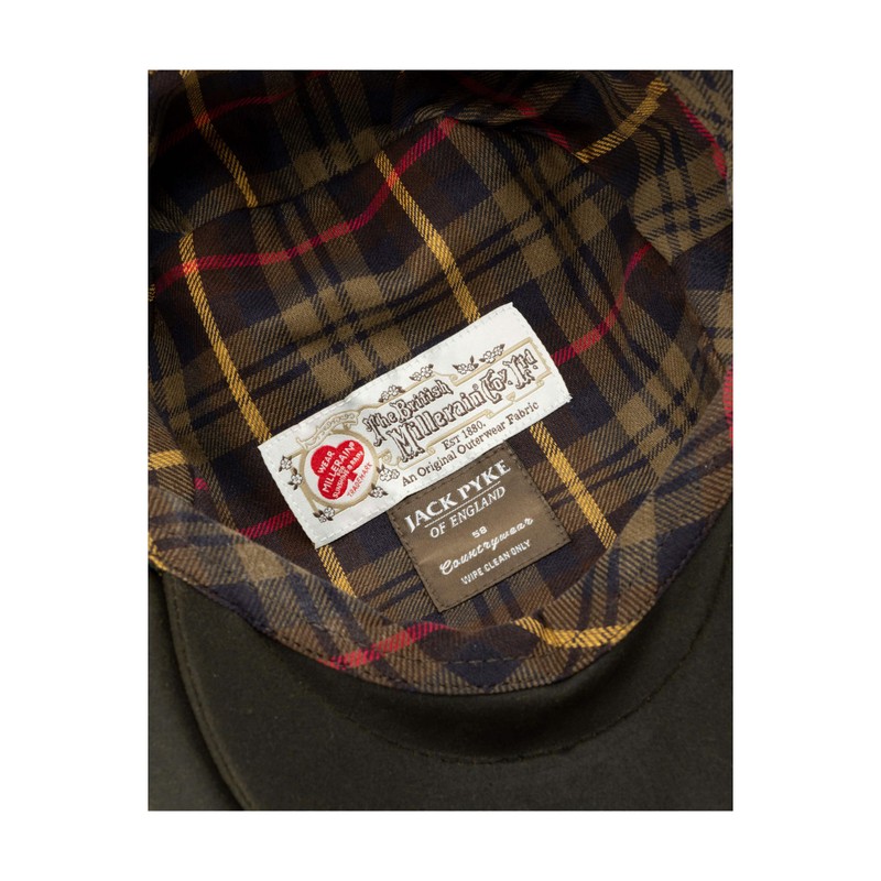 JACK PYKE Men's Flat Cap - 100% British Millerain 375gms Waxed Cotton with Cotton Tartan Lining, Tweed Pattern, Popper Peak, Lightweight & Waterproof Newsboy Flat Cap - Green, 60cm