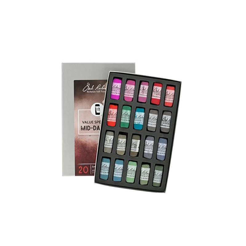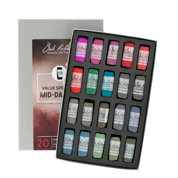 Jack Richeson Hand Rolled Soft Pastel Set, Spectrum Mid Darks 3 Set of 20