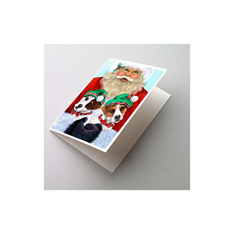 Jack Russell Christmas Santa Greeting Cards and Envelopes Pack of 8
