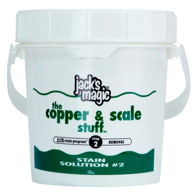 Jack's Magic® The Copper & Scale Stuff - Stain Solution 2 provides pool owners with an easy and effective way to remove copper stains and scale buildup, while being more effective than acid-washing your pool. Stain Solution 2's powerful formula cuts through stains and scale, yet is compatible with all pool types and surfaces. This solution will save you time by eliminating hand scrubbing or pool drainage from your maintenance list, yet will be just as effective. In order to use this product safely, you must be able to bypass your heater. Note: must bypass heater when using this product.