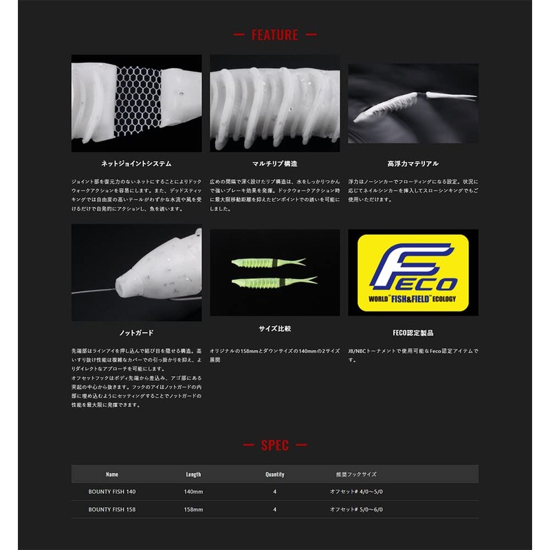 - Recommended Hooks: Offset #4/0 to #5/0, Recommended Rig: No Sinker Rig, Nail Rig 0.45g to 1.3g