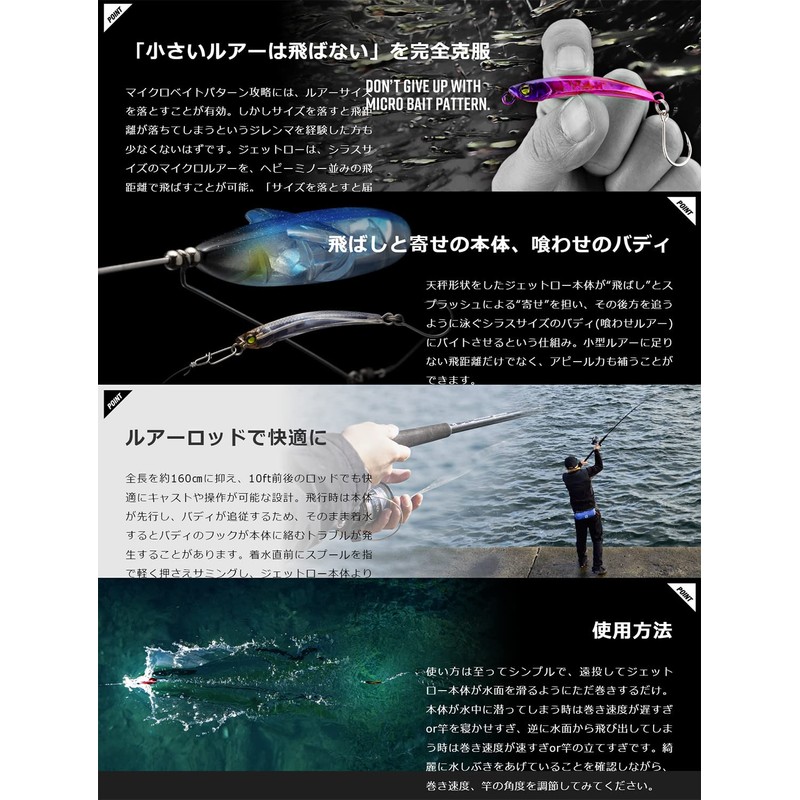 - How to use: Simply roll the jetlow body over a long distance to slide over the surface of the water (*Make sure that it is splashing clean and adjust the winding speed and angle of the rod)