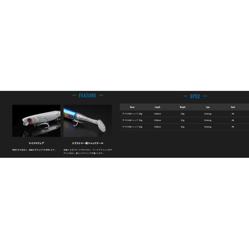 - Type: Sinking (fixed low center of gravity weight) / Material: Body, Plug material, Shad tail part elastomer